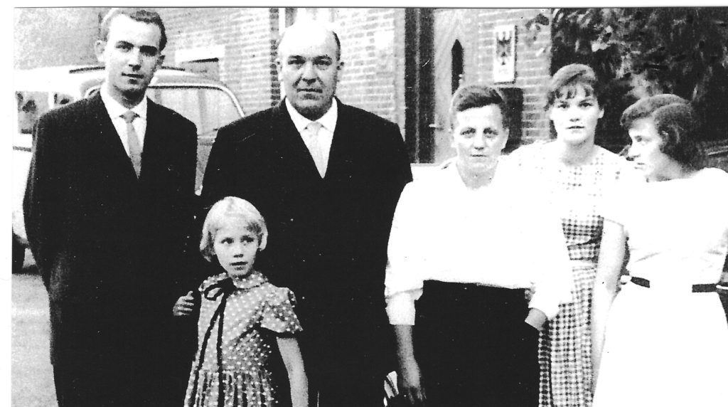 Unsere Mutter (neuntes von zehn Geschwistern aus dem Meller Land) eigentlich im Dauerclinch mit ihrer Schwiegermutter Luise (eine selten gefühlskalte Person, die ihre Zuneigung zu ihrem einzigen Sohn zeigte, indem sie alle anderen schlecht machte). Unser Vater, der zwischen allen Stühlen es allen Recht machen wollte, der immer noch eine findige Idee zum Überleben entwickelte. Unser Bruder, entwurzelt und verunsichert, die Angst vor und im Krieg. Die Schwestern, die zusammenhielten, es aber in der feindlichen schulischen und dörflichen Umgebung schwer hatten. Die weiterführenden Schulen eine halbe Tagesreise entfernt, mit dem Rad, mit dem Zug, zu Fuß. Schulgeld für alle drei Kinder, das die Familie eigentlich gar nicht aufbringen kann. Und dann 1949 auch noch das kleine Nachkriegsunglück : Ich, noch ein Geschwisterchen! Unsere Mutter hat noch kurz vor ihrem Tod 2018 erzählt, dass sie angesichts der Situation ein verschämt-verdecktes Abtreibungsangebot bekommen habe, unser Vater sich aber vehement dagegen gestemmt habe. Wir Drei sind uns einig, dass unser Vater Gustav schon eine gradlinge Figur war und wir ihm Hochachtung schenken. 1953 kommt die Familie (endlich weg von Luise!) nach Lingen, wo unser Vater im Sanitätsdienst des Gefängnisses an der Kaiserstraße tätig ist. Eine Reise nach Stuttgart (Sehnsuchtsort, zu dem wir nicht zurückkehren können) zu den früheren Nachbarn 1959 gelingt noch. Februar 1960 erkrankt Gustav an Kehlkopfkrebs und stirbt am 29. Oktober 1960, an Giselas dreiundzwanzigstem Geburtstag.