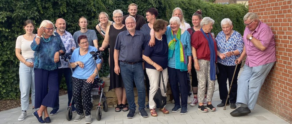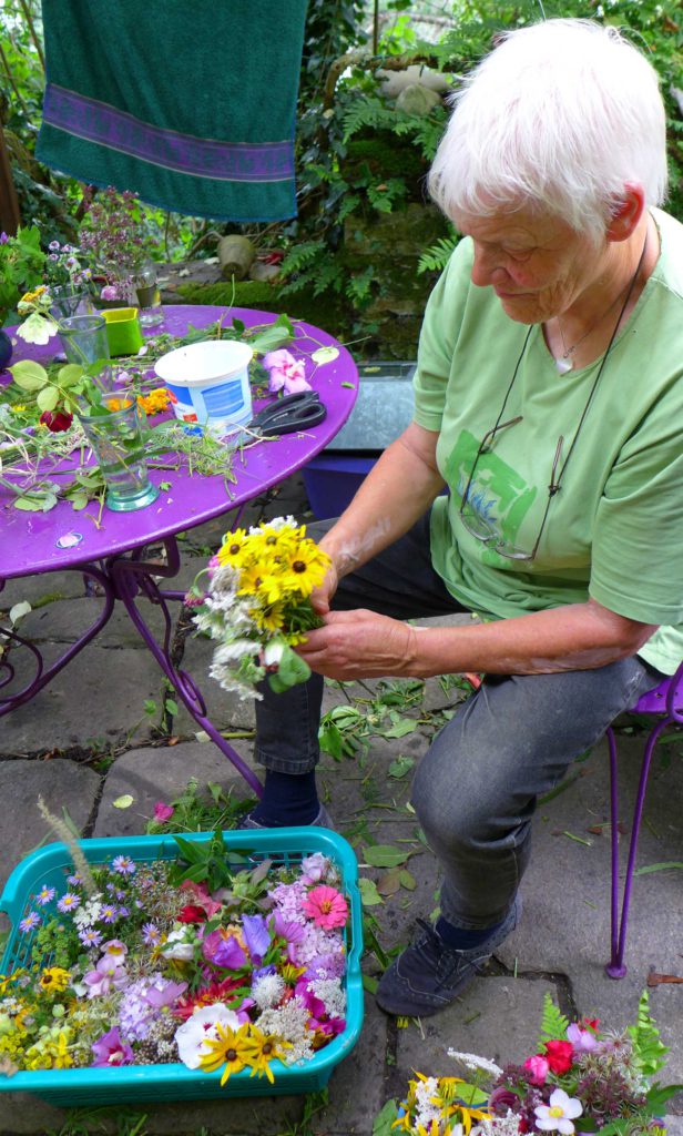 Kein Pomp mit Kränzen und Bouquets, sondern Blumen und Grün aus der Natur, Musik von ihrem Mann Gerd, mit nachbarschaftlichen Gesprächen, Gesängen und einfach einem guten Beisammensein.
