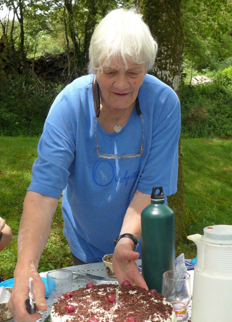 Und weil Gisela zu Anfang einmal gefragt hat, was sie beisteuern kann…wird sie zur Großpoduzentin von Gateau foret noire (Schwarzwälder Kirschtorte). Sie entwickelt sogar eine Technik, die Torte transportabel zu machen (einfrieren und auf den Punkt wieder auftauen lassen!).