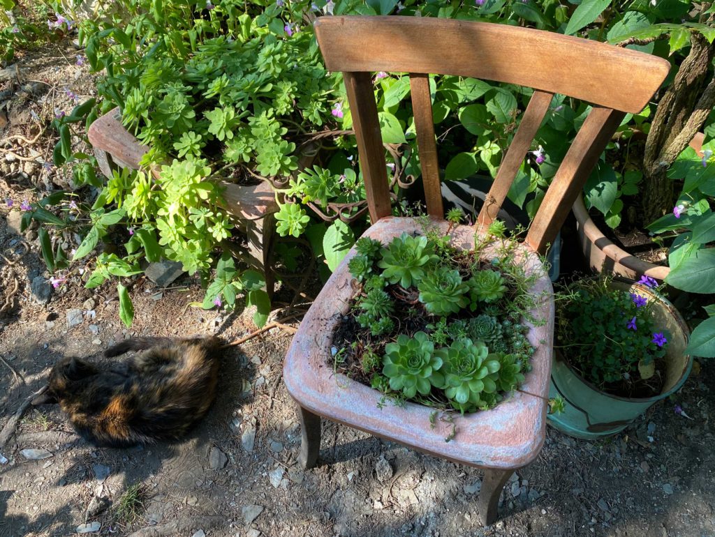 Gisela engagierte sich beim Roten Kreuz und wurde später die Heilkräuterfrau eines südfranzösichen Dorfes. Das ist eine ganz andere Karriere, aber nicht weniger achtbar als mein schwacher Versuch, mich mein Leben lang für die Schule für ALLE zu engagieren. Wir Drei sind uns treu geblieben und nah. Was uns immer verbunden hat, war die Liebe zu Pflanzen. Das – wie wir ironisch sagten – Garten-Gen ist weitergewandert in die nächste Generation: Giselas Tochter Julia, meine Tochter Julia…und das Näh-Gen ebenfalls. Das Technik-Gen hat eher die Herren getroffen.