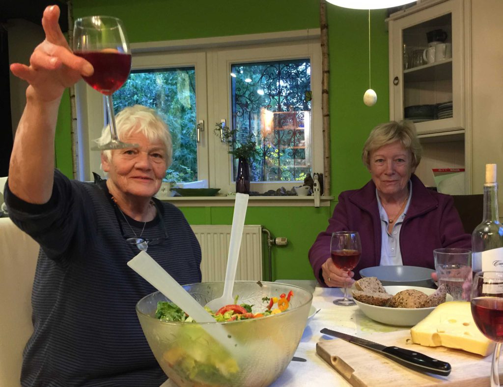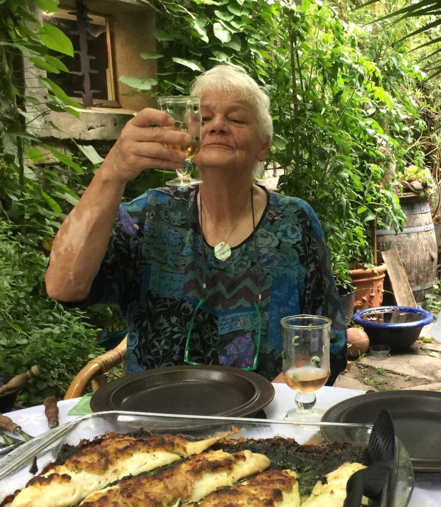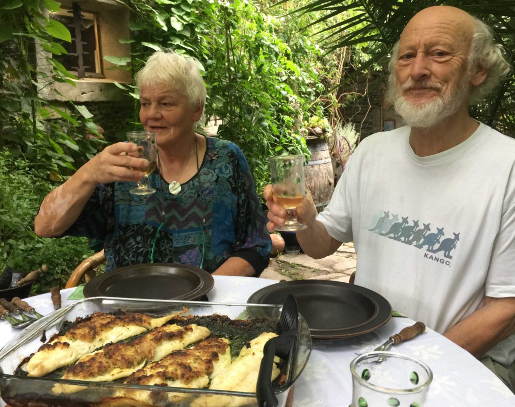 Gisela kocht sehr lecker, vegetarisch, besser flexitarisch mit Fisch. Sehr beliebt bei allen Besuchern. Ein Hühnchen-Stück, das sie vesehentlich in Carcassonne in der Klinik serviert bekam, veranlasste sie zu der belustigten Bemerkung, das habe sie nun nach 50 Jahren Fleischlosigkeit auch nicht umgebracht, aber der von ihr vermutete Fisch habe schon recht eigenartig geschmeckt…