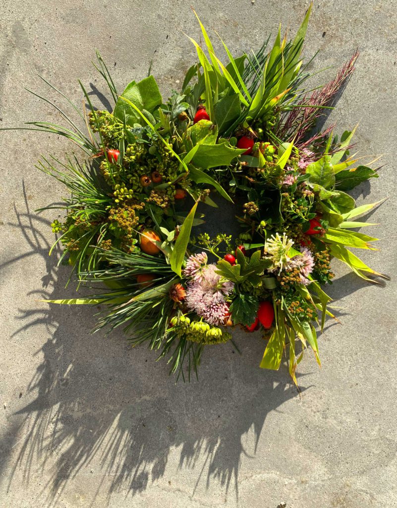 Diesen Kranz macht Gisela aus dem, was ums Haus herum wächst