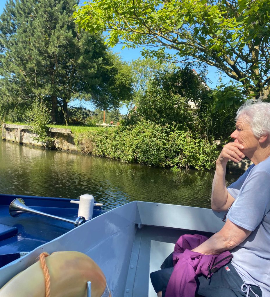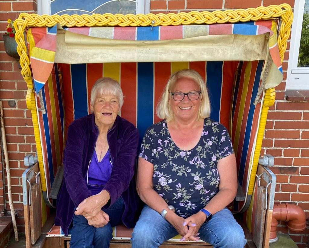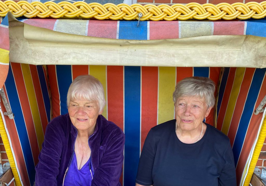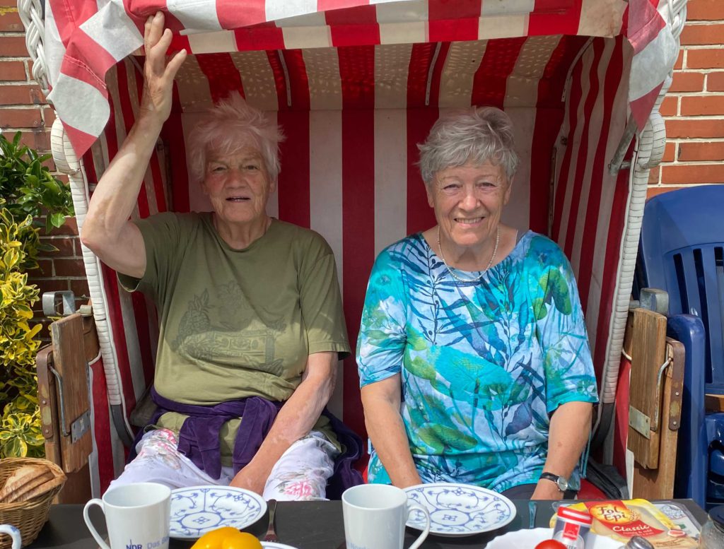 Dann kommt die Corona-Pause….aber die Reisegruppe Silberlocke plant weiter – und im Juni 2022 geht es endlich auf die Hallig Langeneß, auf die Tadenswarf. Dort hat die gesamte Gastfamilie Corona, managt aber das Ganze berührungsfrei: Wir gehen in den kleinen Laden, kaufen ein durch beherzten Griff ins Regal und am Ende wird von einem gerade mal Corona-negativen Familienmitglied abgerechnet. Das war genial. Wir hatten wunderbare Tage und bekamen sogar frische Nordseekrabben geliefert. Zu unserem Erstaunen war die Hallig sehr laut: ein riesiges Vogelgeschrei umgab das Haus. Gisela fand besonders witzig das Gegurgel der Eiderenten.