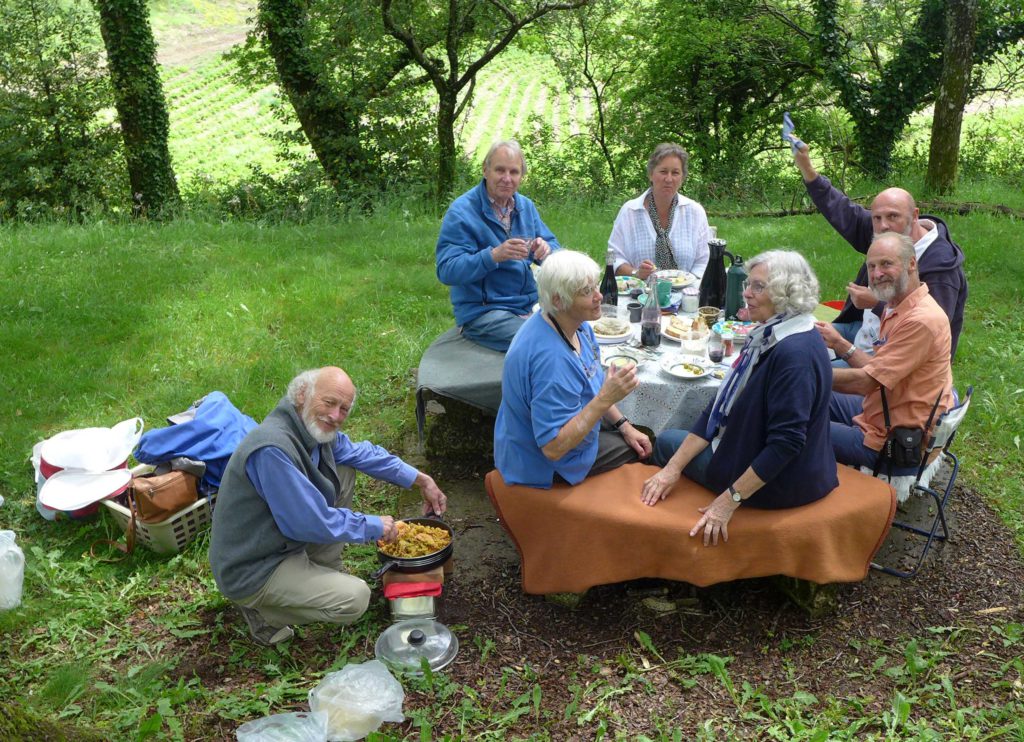 Pique-nique mit Freunden am 11. Juni 2016 (Gerds Geburtstag) v.l.: Gerd, Henner, Beatrice, Hans-Georg, Harry, Anke, Gisela