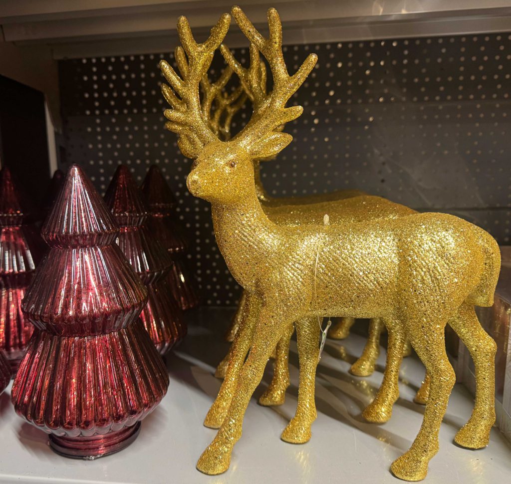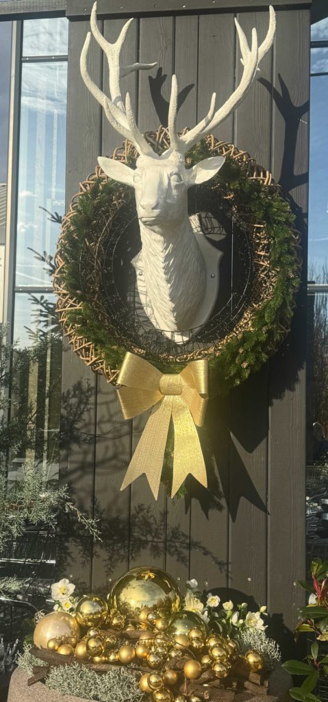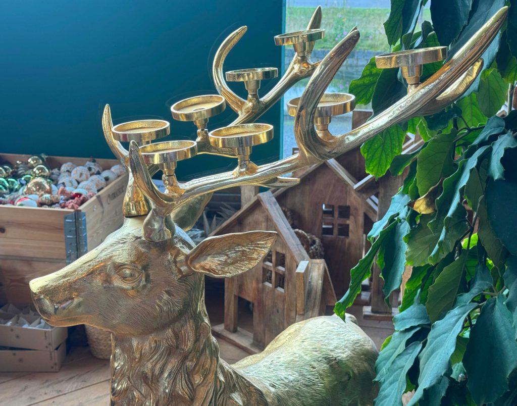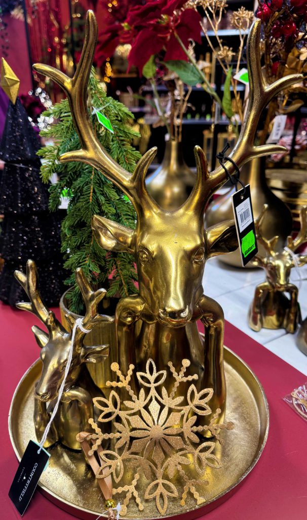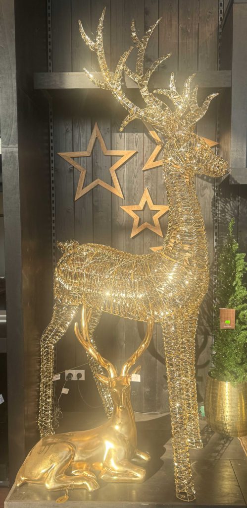 Von der nikolausigen Transportangelegenheit – in meiner Kindheit konnte nicht abschließend geklärt werden, wer denn nun die Geschenke brachte: das Christkind oder der Nikolaus? – dominiert inzwischen das Dekogewerbe und übrig geblieben vielerorts: Der Hirsch! Als solcher und mächtig golden und mit viel Gedöns.