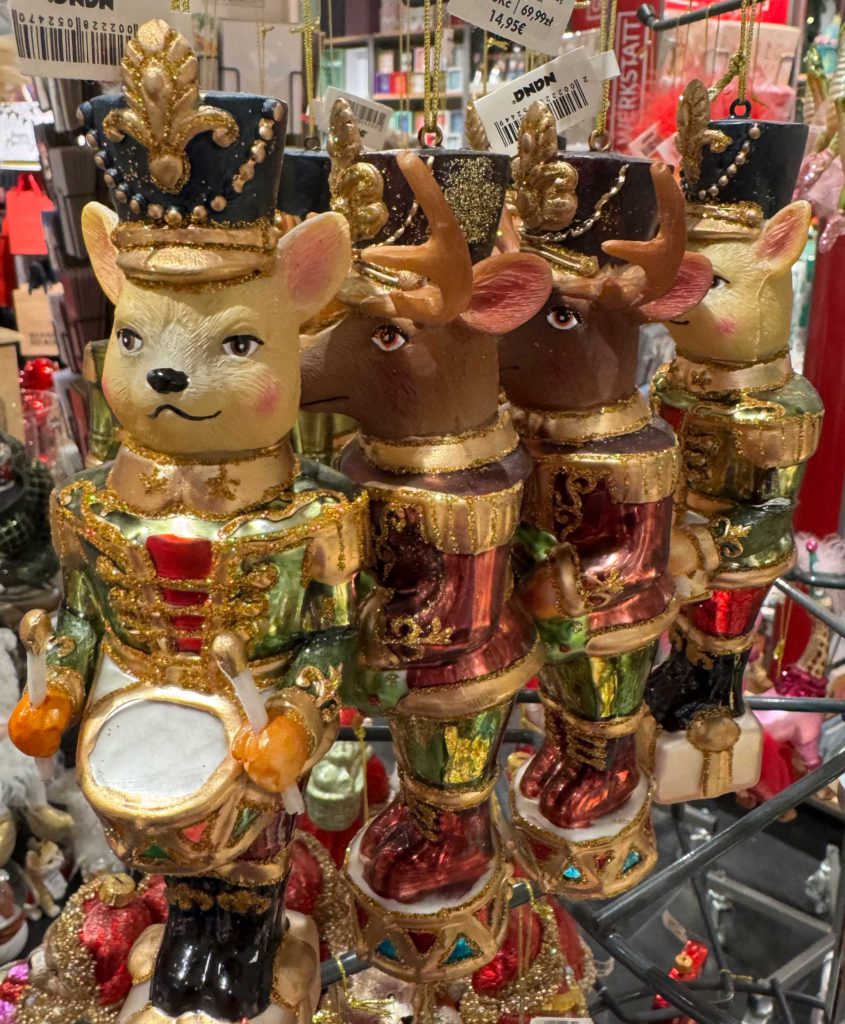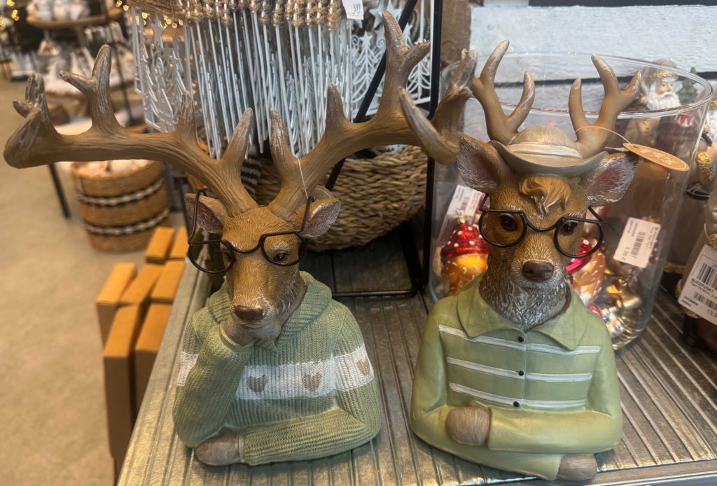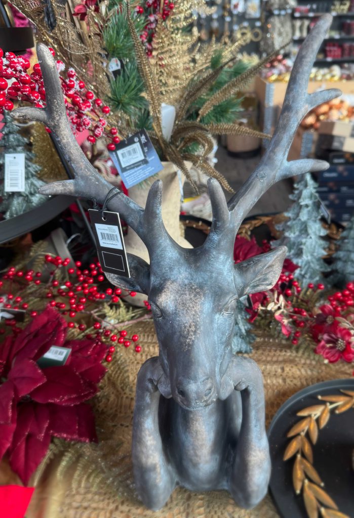 Wir haben uns inzwischen an sie gewöhnt: Das Weihnachtspersonal, das so ab Ende September in den einschlägig vorbestraften Läden auftaucht und wir sind durch jahreszeitliche Überflutung recht abgehärtet, haben sozusagen eine Weihnachtsdeko-Gänsepelle. Dieses Jahr aber haben die Designer mich doch wieder mit einer neuen Figur erstaunt: dem nachdenklichen Hirschen! Jawohl!